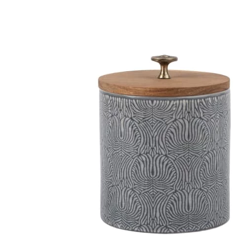 Meilleure vente ⌛ Maisons Du Monde Bocaux, Pots Et Bonbonnières Bocal En Faïence Motifs Graphiques Et Acacia H11 ????