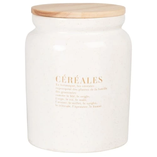 Vente flash ???? Maisons Du Monde Bocaux, Pots Et Bonbonnières Pot En Grès Ivoire Et Couvercle En Hévéa H19 ????